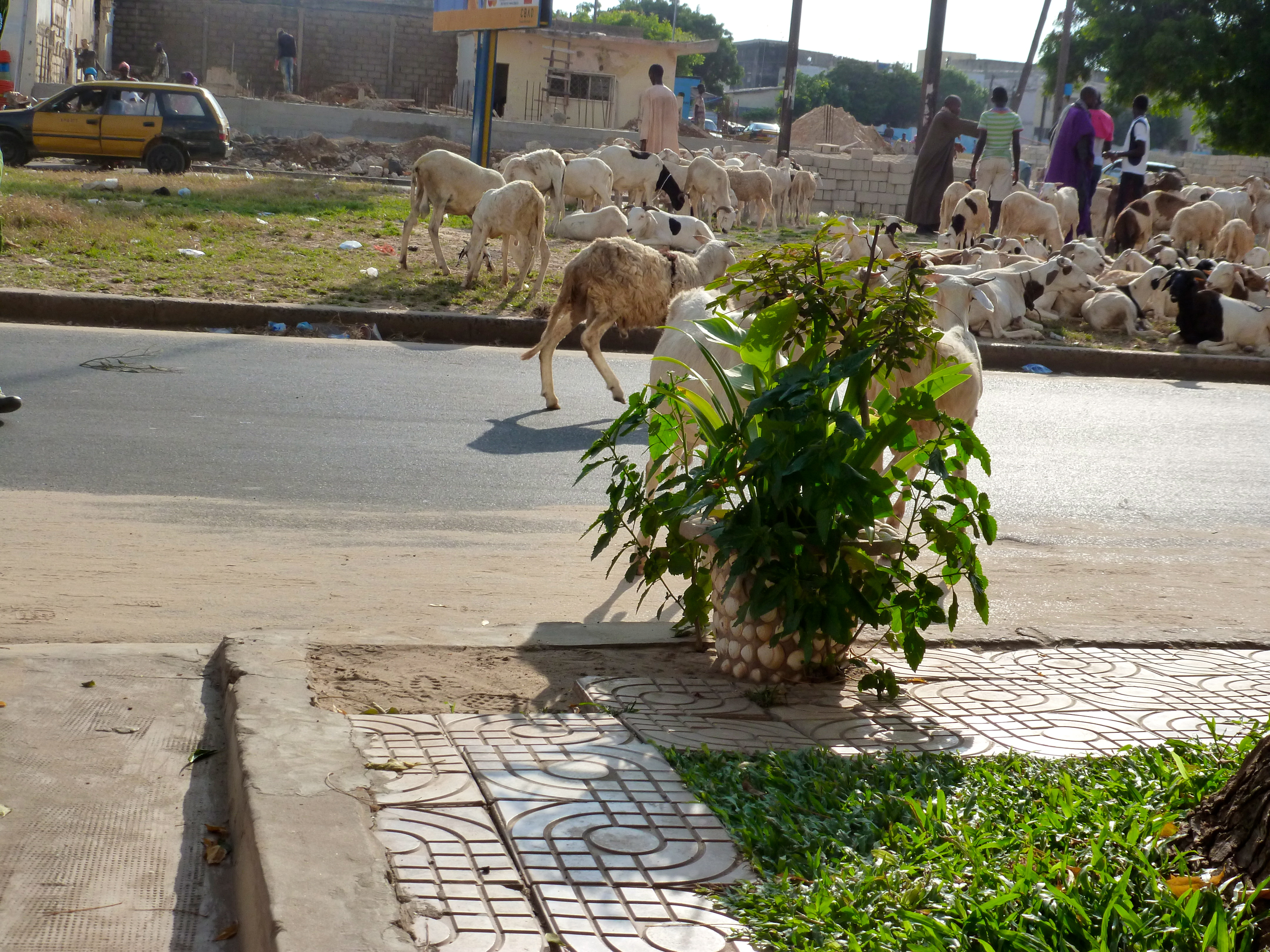 - sometimes you find yourself with said “petit baobabs” as in “petit trees” gift-wrapped (even though you have three weeks before you give one “petit baobab” away and four weeks before second “petit baobab” reaches secure land and both “petit baobabs” have to get on a plane between now and then) with frilling plastic and a very nice red bow, walking down the busy streets of Dakar with people shouting at you: “beautiful gift! a taste of Senegal!”